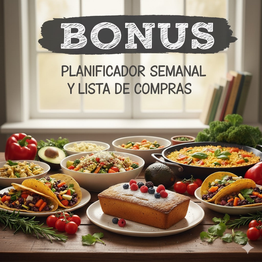 Más que recetas, es un plan simple para organizarte, ahorrar tiempo y sentirte bien comiendo rico y saludables.